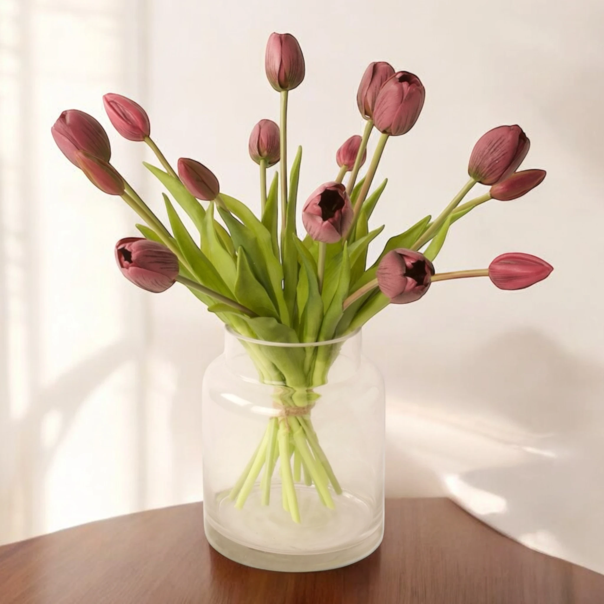 Sfeervol en Tijdloos: De mauve kleur geeft het interieur een warme, zonnige uitstraling, passend bij elk seizoen. Deze tulpen passen perfect in zowel moderne als klassieke interieurstijlen en brengen een vrolijke sfeer in huis.
