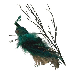 Decoratie Pauw Groen 28cm 2 stuks