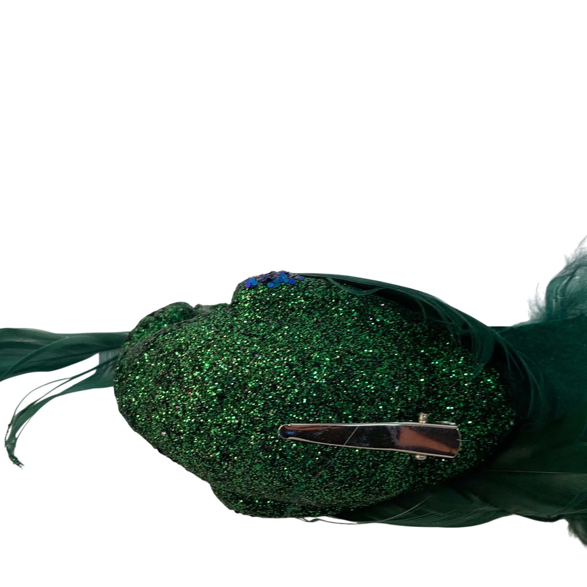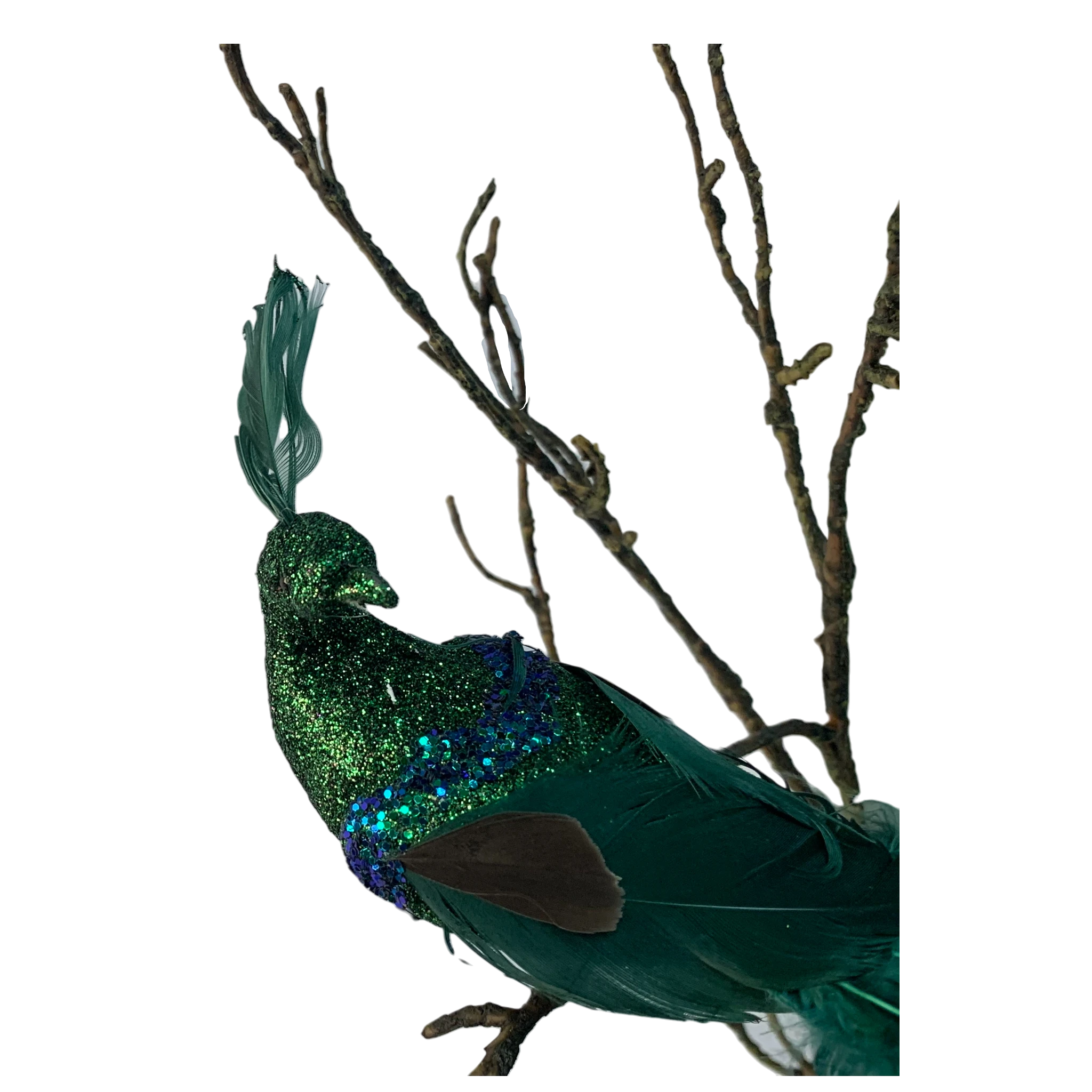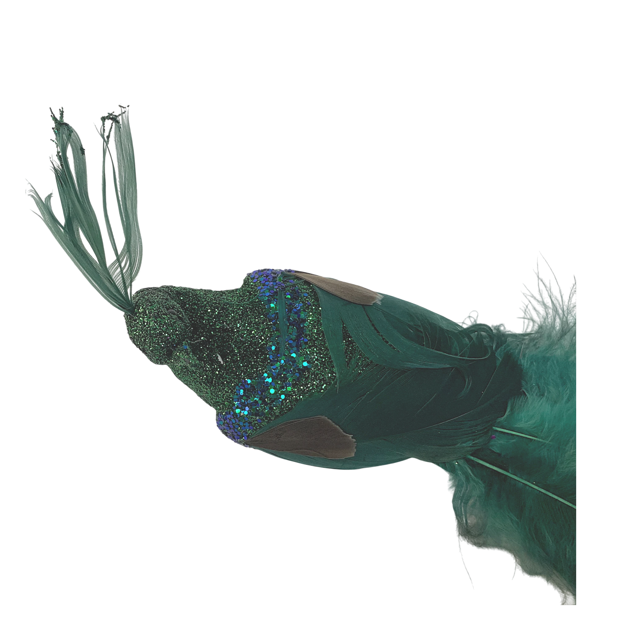 Pauw met Veren en Glitters – Groen – 28 cm-Kerstversiering