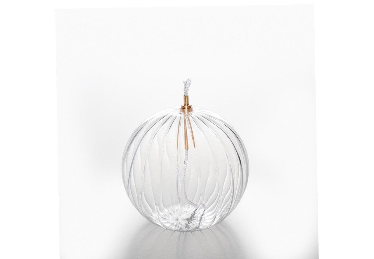 Olielamp in Bolvorm met Ribbelstructuur 10en 12cm inclusief lont
